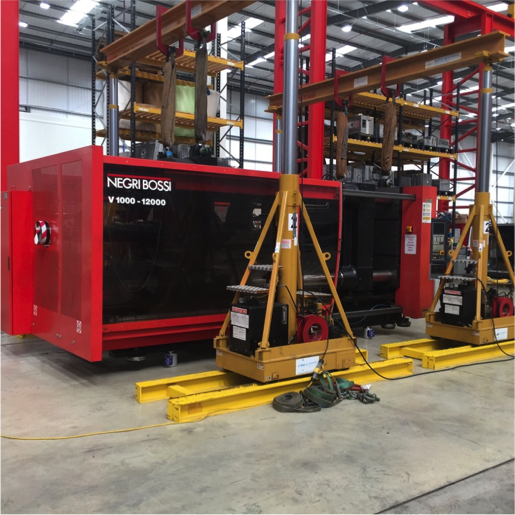 This injection molding machine, or an injection press made to manufacture plastic products, was weighed correctly via the compression load cell to be 64,505 lbs.