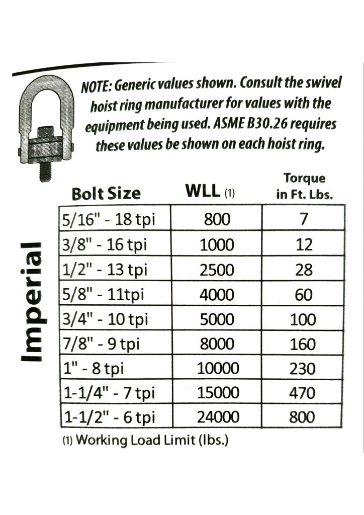 To give a better idea, while referring back to the generator, while it would require a 2” or larger eye bolt to perform the lift, using a swivel hoist ring would require only a 1” bolt size that would carry a 10,000-pound WLL and safely fulfill the requirements of the lift.