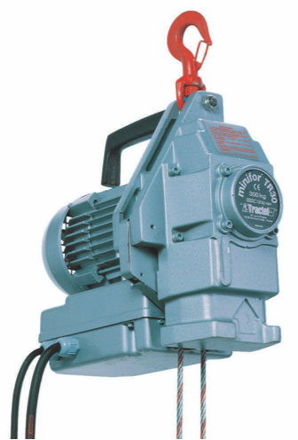 The Minifor hoist is a lightweight portable power hoist suitable for a number of lightweight operations. They typically come in two models: the TR30 and TR50. Both are useful for lifting light loads, which are usually less than approximately 1000 pounds, but by adding sheave blocks to your rigging plan can increase the Minifor carrying capacity exponentially.