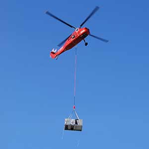 It took extensive research to determine the correct helicopter for these specialized operations as it had to be able to lift the biggest rooftop units and it had to be certified to fly over busy city areas while doing so. The team decided upon the Sikorsky S-58T helicopter. With upgrades and safety features added, it can lift up to 4,500 lbs. The interior cargo space is 18’ long and 6’2” high, and can carry up to 17 people or 4,000 lbs. of cargo. Four skids can be loaded with a forklift through the side door and swing open tail section.